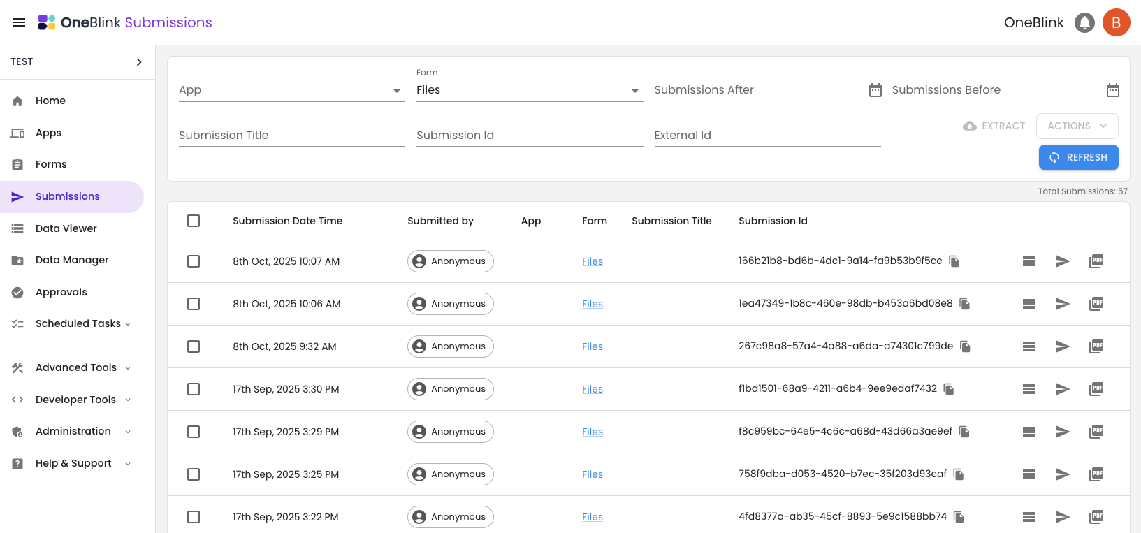 If you have any questions or would like assistance with the Submission menu please contact us via this support portal or email support@oneblink.io. We are happy to assist in any way we can.
